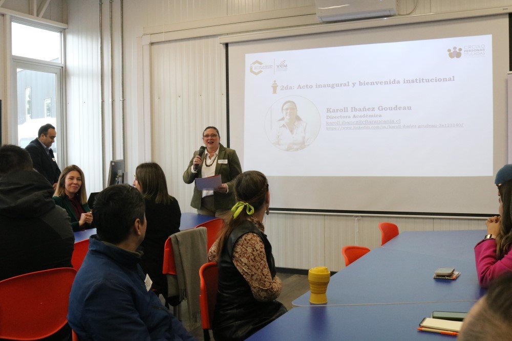 La bienvenida estuvo a cargo de la Directora Académica, Karoll Ibáñez Goudeau, y la profesional de Vinculación con el Medio, Paula América Bravo.