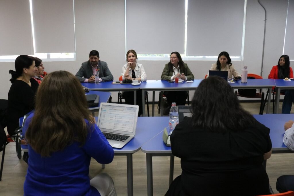 Durante la tarde, se reunieron nuevamente con la Dirección Académica, esta vez junto a las y los Jefes de Escuela, para conocer los avances del proceso de ajuste microcurricular de las distintas carreras.