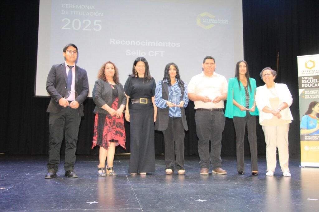 También recibieron reconocimientos por encarnar de la mejor manera el Sello CFT las nuevas Técnicas y Técnicos Ángel Patricio Guzmán Álvarez, de la carrera de TNS Analista Programador; Alanis Javiera Reyes Cortés, de la carrera de TNS Asistente del Educador de Párvulos; Javiera Stephanie Gallegos Cea, de la carrera de TNS Asistente del Educador Diferencial; Wladimir Alexis Ñeguey Fuentealba, de la carrera de TNS en Climatización y Refrigeración; Accel Sergio Lienán Colipí, de la carrera de de la carrera de TNS en Electricidad y Automatización; Gabriela Valeska Arriagada Parada, de la carrera de TNS en Enfermería y Felipe Alexis Carrasco Pérez, de la carrera de TNS en Gestión de Empresas.