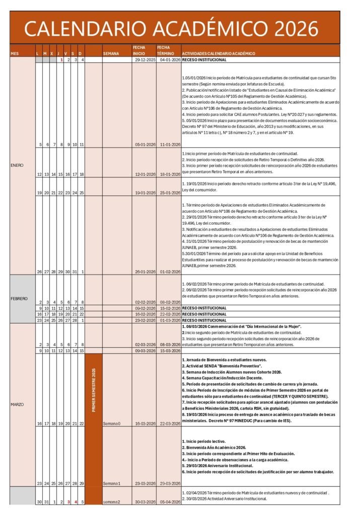 Calendario Académico 2026